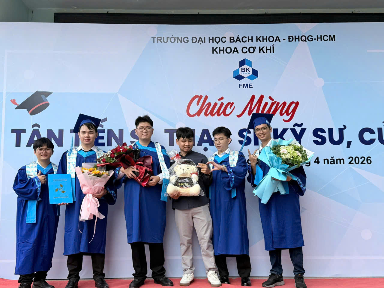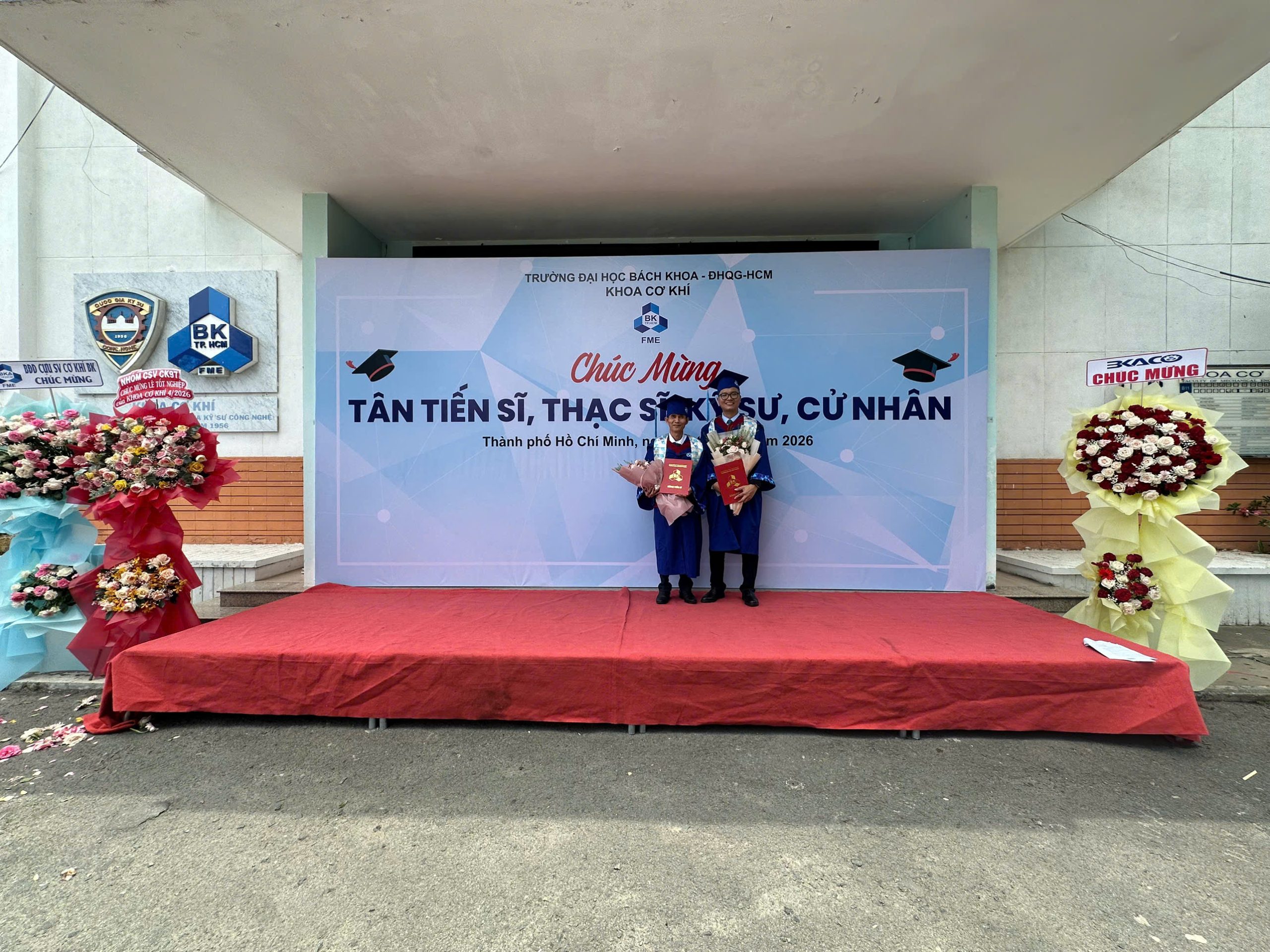 Trong hai ngày 23-24/4/2026, trường Đại học Bách khoa – ĐHQG-HCM long trọng tổ chức Lễ Tốt nghiệp, trao quyết định công nhận tốt nghiệp và cấp bằng cho các tân Khoa!!! Về phía khoa Cơ Khí hân hoan chào đón 02 Tân Tiến sĩ, 32 Tân Thạc sĩ và 151 Tân Cử nhân, Kỹ sư trong đợt tốt nghiệp tháng 4.