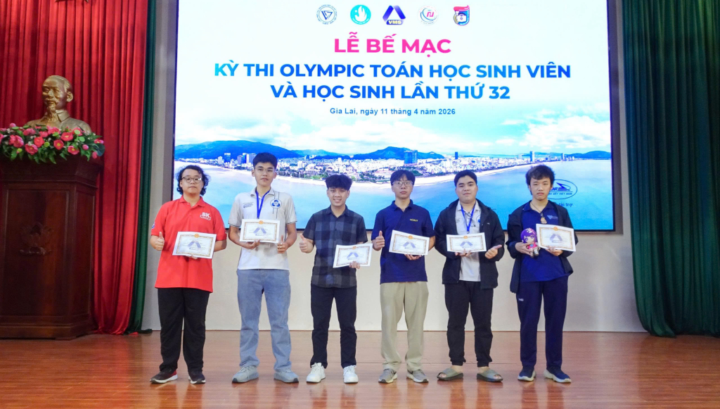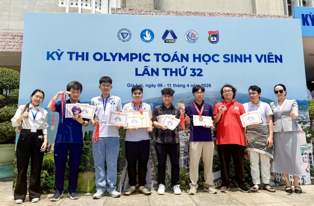 Đội tuyển sinh viên của Trường Đại học Bách khoa – ĐHQG-HCM đã xuất sắc giành 09 giải thưởng tại Olympic Toán học sinh viên toàn quốc lần thứ 32, diễn ra từ 06 – 10/4/2026 tại Trường Đại học Quy Nhơn với sự tham gia của hơn 660 sinh viên đến từ 90 trường đại học, học viện trên toàn quốc.