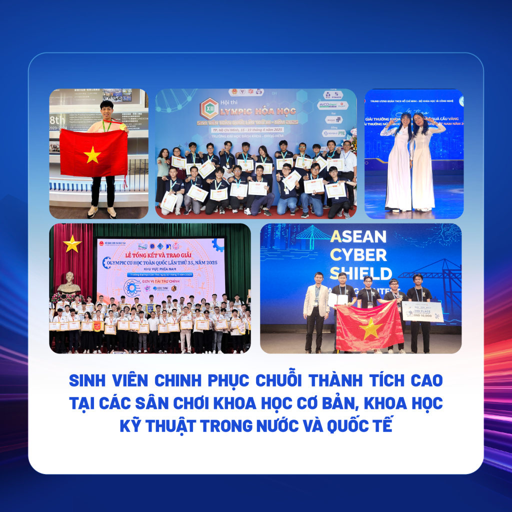 Năm 2025, sinh viên Trường Đại học Bách khoa – ĐHQG-HCM tiếp tục khẳng định vị thế tại các sân chơi khoa học cơ bản và khoa học kỹ thuật trong nước và quốc tế. Tiêu biểu là 02 sinh viên được vinh danh Giải thưởng “Nữ sinh Khoa học Công nghệ Việt Nam năm 2025”, ghi nhận nỗ lực bền bỉ trong học tập, nghiên cứu và sáng tạo.