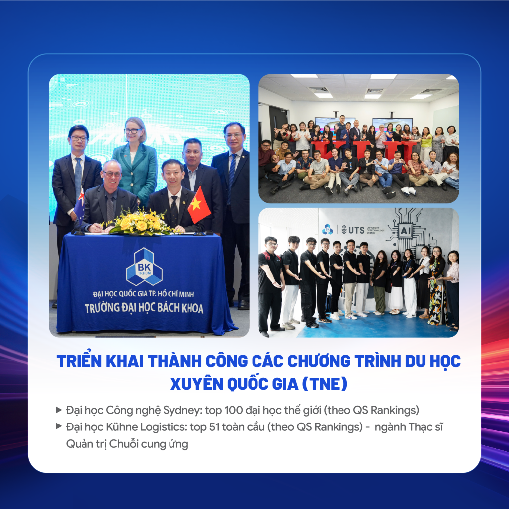 Mô hình du học xuyên quốc gia (TNE) được đánh giá là bước tiến quan trọng trong chiến lược quốc tế hóa giáo dục đại học tại chỗ của Trường ĐH Bách khoa khi cho phép sinh viên học toàn thời gian tại Việt Nam theo chương trình nguyên bản của trường đối tác và nhận bằng do đối tác cấp.