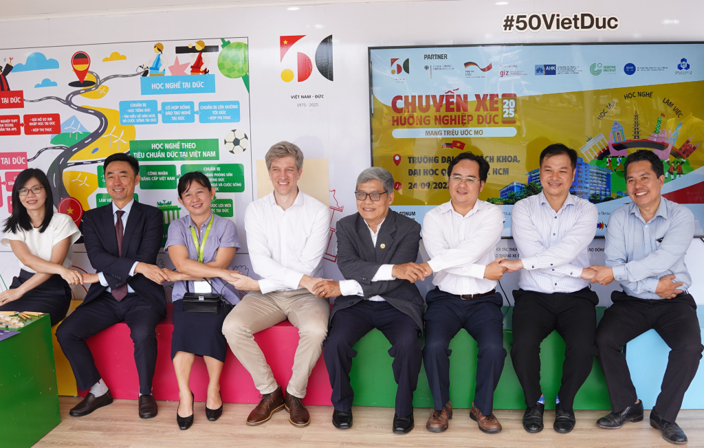 Commemorating half a century of diplomatic relations between Germany and Vietnam, the German Career Truck, with its mission to “carry millions of dreams,” is scheduled to travel through approximately 20 provinces and cities across Vietnam. HCMUT was honored to be a stop on this journey, providing the Vietnamese public with information about career and educational opportunities in Germany. The event carries even greater significance as HCMUT is currently a trusted academic partner of over 15 German universities and enterprises.