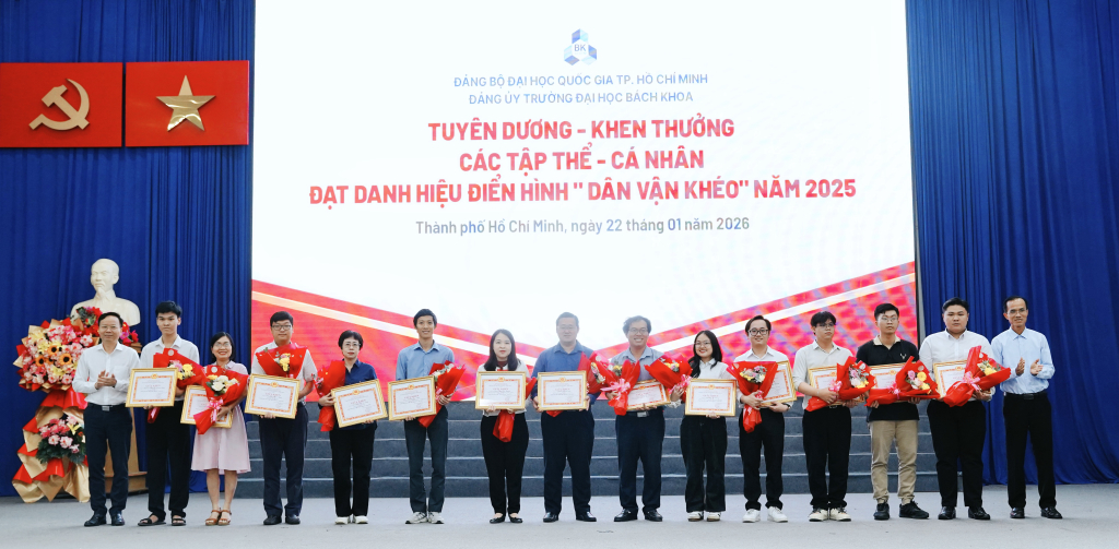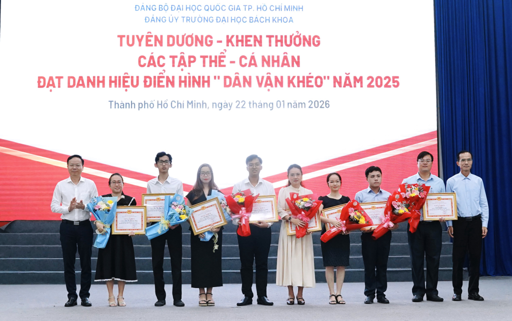 Hội nghị sáng nay cũng đã trao quyết định khen thưởng và tuyên dương cho 04 tập thể và 06 cá nhân đạt thành tích “Dân vận khéo” năm 2025 cấp ĐHQG-HCM; 08 tập thể và 37 cá nhân đạt thành tích “Dân vận khéo” Trường Đại học Bách khoa.