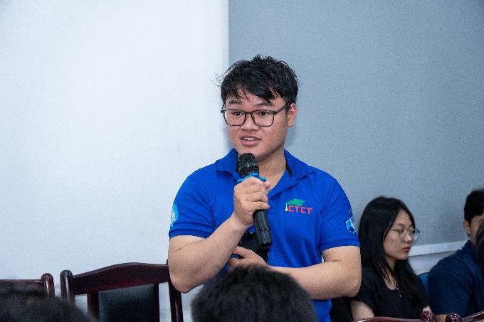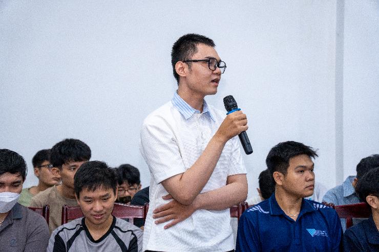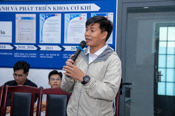 Hình 10: Trần Hữu Hào, sinh viên ngành Kỹ thuật Nhiệt, trao đổi và đặt câu hỏi với Công ty TNHH Kỹ Thuật Taikisha Việt Nam.
