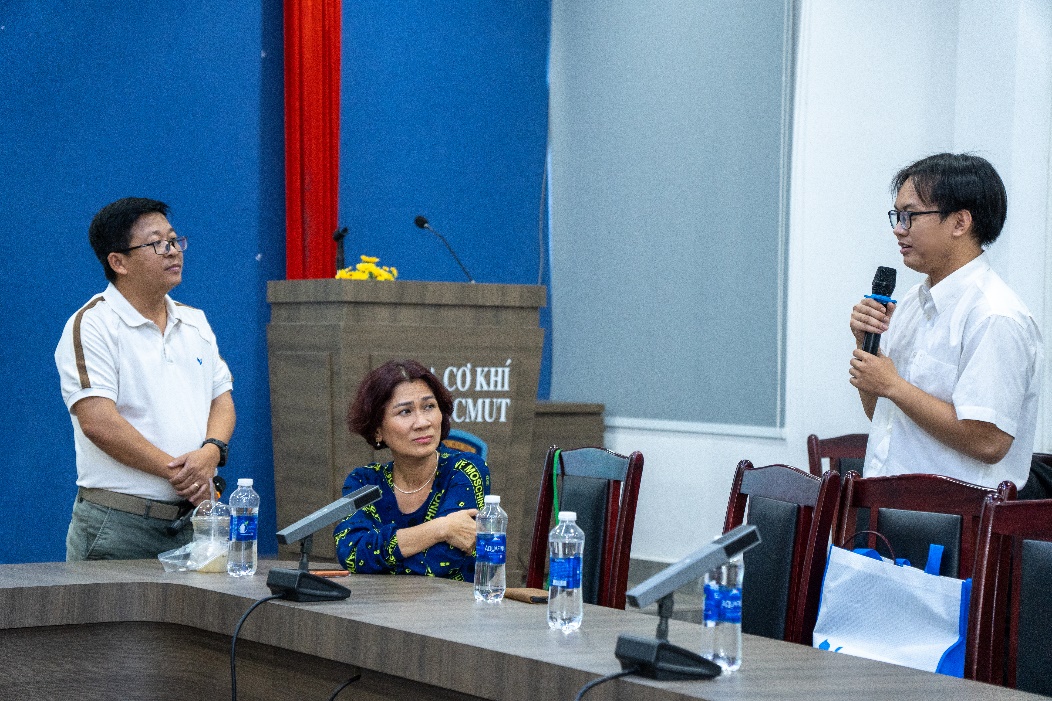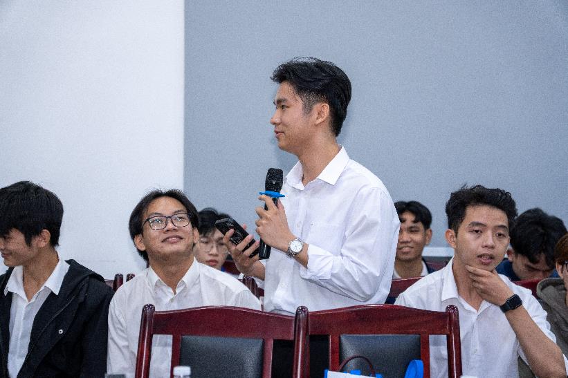 Ngay sau phần giới thiệu chương trình thực tập, không khí hội trường trở nên sôi nổi với phần hỏi đáp trực tiếp giữa sinh viên ngành Kỹ thuật Nhiệt và đại diện Công ty TNHH Kỹ Thuật Taikisha Việt Nam. Các bạn sinh viên ngành Kỹ thuật Nhiệt đã chủ động đặt nhiều câu hỏi thực tế về kỹ năng cần có khi làm kỹ sư MEP, sự khác biệt trong phong cách làm việc tại doanh nghiệp Nhật Bản, kinh nghiệm triển khai các dự án lớn và cơ hội thăng tiến trong nghề. Đại diện công ty đã giải đáp từng câu hỏi một cách cởi mở, chân thành và giàu thông tin thực tế, giúp sinh viên ngành Kỹ thuật Nhiệt hình dung rõ hơn con đường nghề nghiệp mà mình có thể theo đuổi.