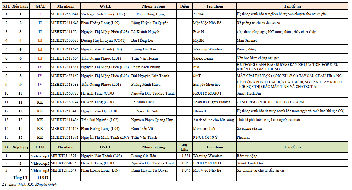Ngày hội Kỹ thuật năm học 2025 – 2026 đã khép lại thành công rực rỡ, tô đậm thêm không khí phấn khởi trước thềm năm mới 2026. Những giải thưởng danh giá đã tìm được chủ nhân xứng đáng: