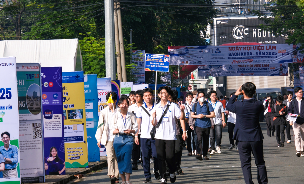 Sức hút của Ngày hội Việc làm Bách khoa 2025 không chỉ nằm ở sự quan tâm mạnh mẽ của hàng nghìn sinh viên của Trường ĐH Bách khoa và các cơ sở giáo dục đại học trên địa bàn TP.HCM mà còn xuất phát từ chính sự săn đón niềm nở của hơn 140 doanh nghiệp trong và ngoài nước đối với lực lượng lao động trẻ đầy tiềm năng.