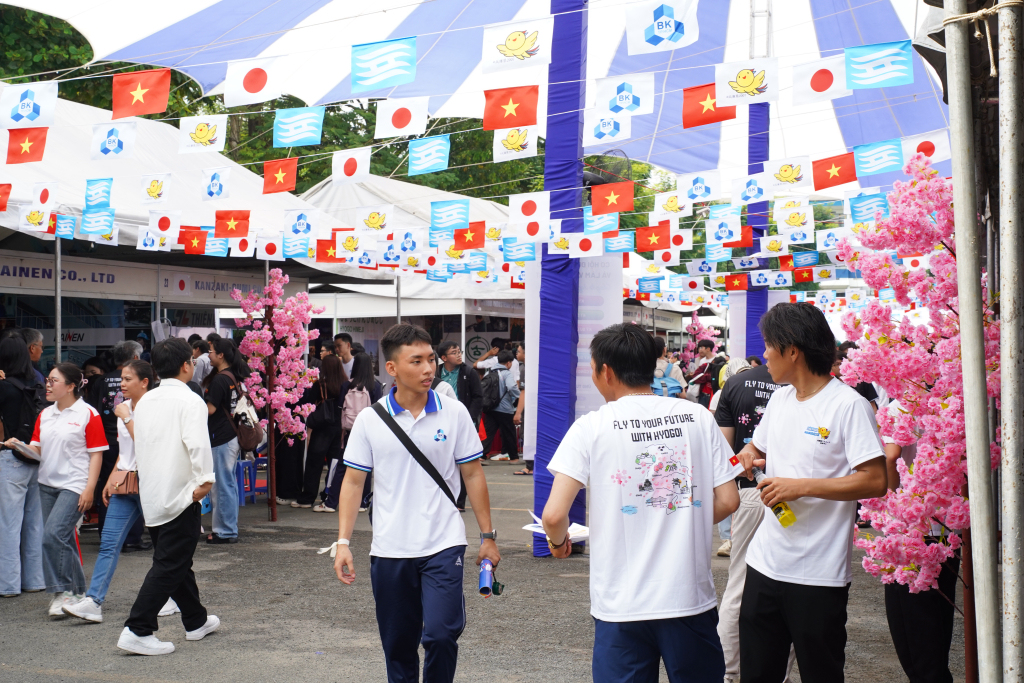 Đặc biệt, đây là năm đầu tiên có 25 doanh nghiệp từ tỉnh Hyogo, Nhật Bản góp mặt tại ngày hội, trực tiếp phỏng vấn và chia sẻ các chương trình thu hút lao động hấp dẫn của xứ Phù Tang đến các bạn sinh viên.