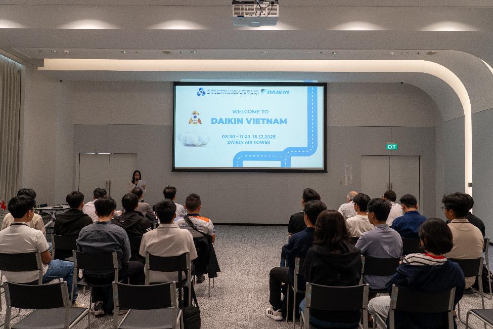 Ngày 15/12/2025, nhằm tạo điều kiện cho sinh viên ngành Kỹ thuật Nhiệt tiếp cận thực tế các hệ thống công nghệ tiên tiến trong lĩnh vực điều hòa không khí và công trình xanh, Bộ môn Công nghệ Nhiệt lạnh, Khoa Cơ khí, Trường Đại học Bách khoa – ĐHQG-HCM đã phối hợp cùng Công ty Cổ phần Daikin Air Conditioning Vietnam (Daikin Vietnam) tổ chức chương trình tham quan Daikin Air Tower (10 Công Trường Quốc Tế, Phường Xuân Hòa, Thành phố Hồ Chí Minh), kết hợp giới thiệu Daikin NextGen Program 2025.