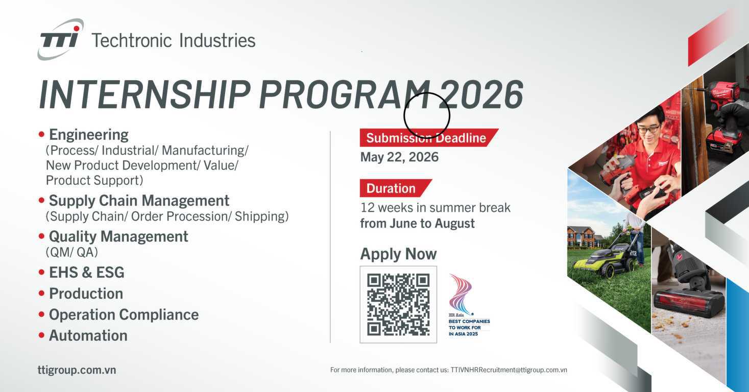 [TTI Vietnam] Thông tin Chương trình Thực tập sinh 2026 (Hơn 70 vị trí thực tập)