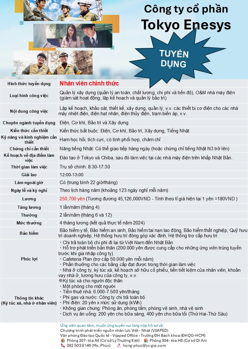 TUYỂN DỤNG NHÂN SỰ CỦA CÔNG TY CỔ PHẦN TOKYO ENESYS